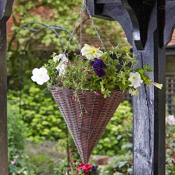• Although it’s carefully designed to look like natural rattan, this Smart Garden Chestnut Faux Rattan Hanging Cone – 14” is actually made from a plastic based poly rattan